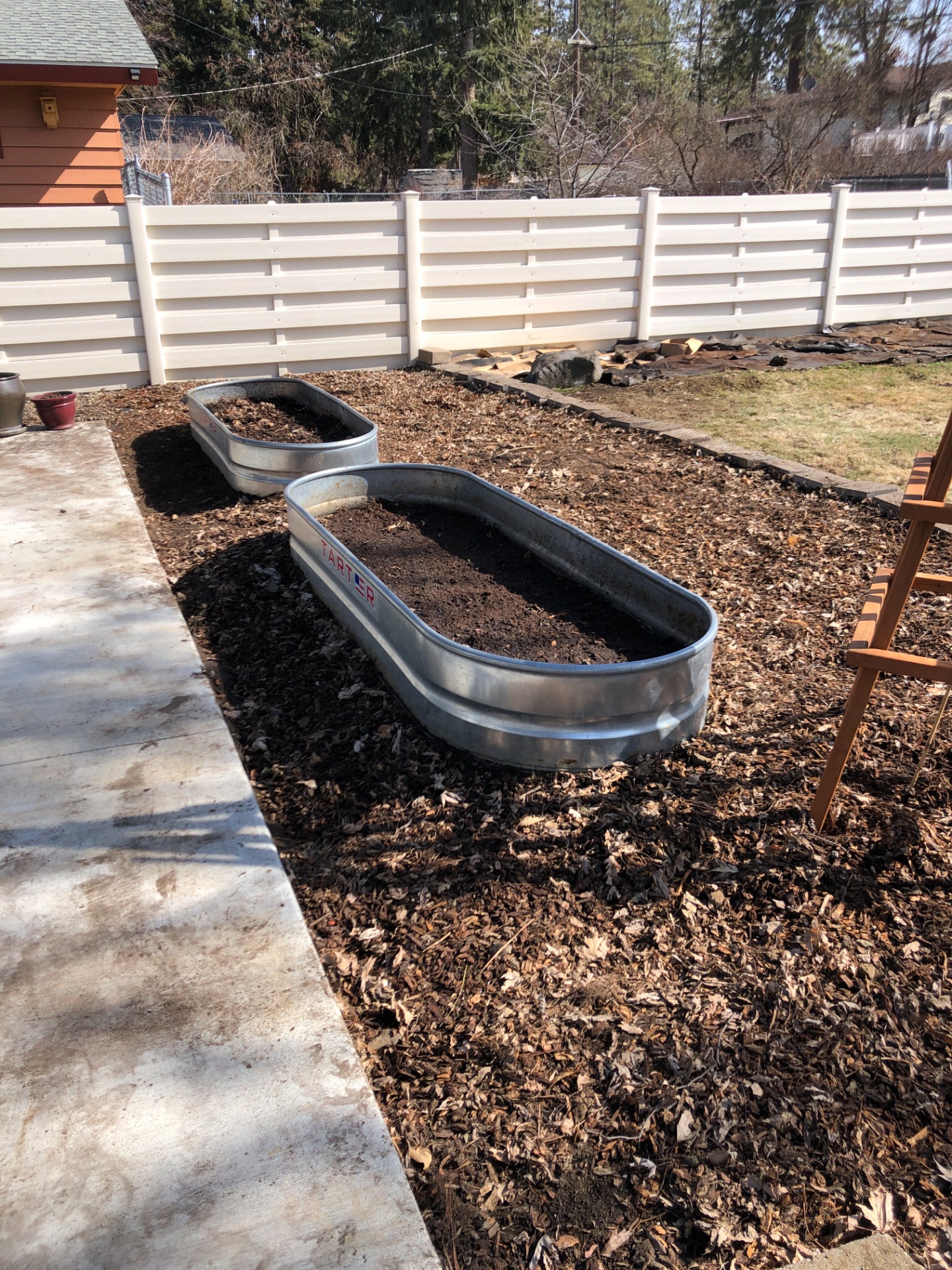 A Spokane Scape project. Reduced grass in large backyard, creation of colorful perennial and flowering shrub garden bed and a thriving raised bed veggie and herb garden.