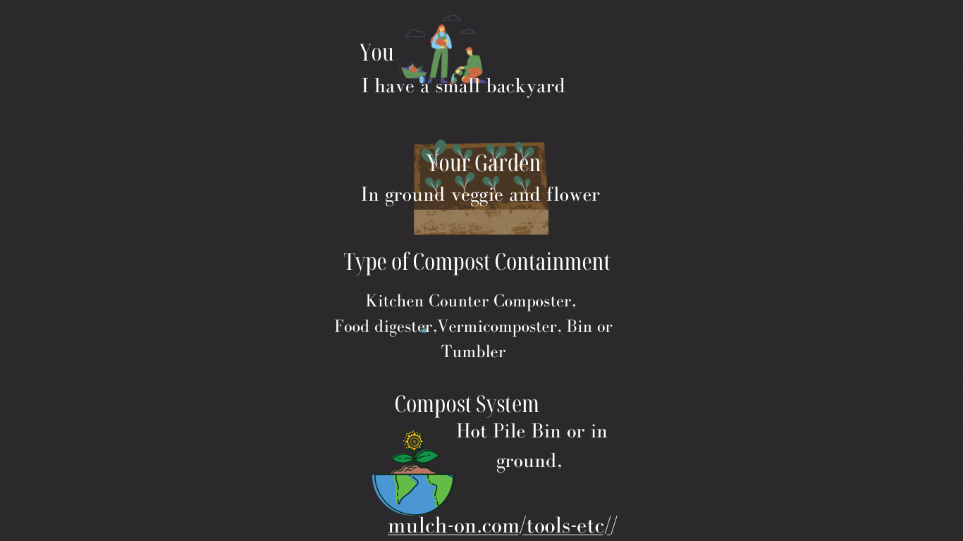 Do you see that your garden is a container to start with, but your compost containment is something totally different? The kitchen compost bin basically stores your kitchen food scraps like veggie waste and coffee grounds that you can then bury into your container garden. Compostable bag liners further simplify the process by making it easy to remove and bury directly into your garden. An added investment would be the Kitchen Counter Composter also call food digester which would breakdown any other foods into a actual compost material that can be added to your soil further decreasing food waste.